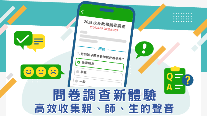 未來,學校可更頻繁利用問卷調查功能,收集大家對校園各項建設及服務的寶貴意見。例如,可針對圖書館功能需求、課外活動安排偏好或校園綠化設計方案展開調查,讓家長、學生與老師的建議成為學校決策的重要依據,共同打造更優質的教學與生活環境,推動校園美好未來!